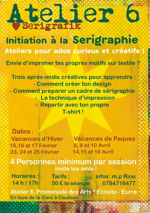 Bienvenue à cet atelier de 3 après midi pendant les vacances scolaires pour sérigraphier ton design !!